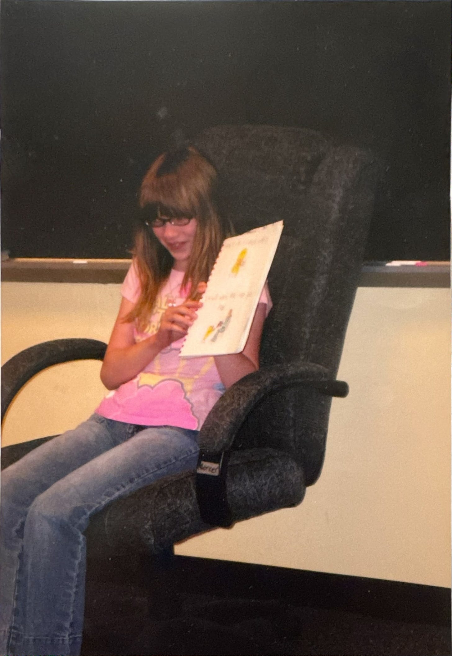 In fourth grade, we had to make our own version of “If You Give a Mouse a Cookie.” Below is one of the pages from my version, as well as a picture of me reading it to my class.